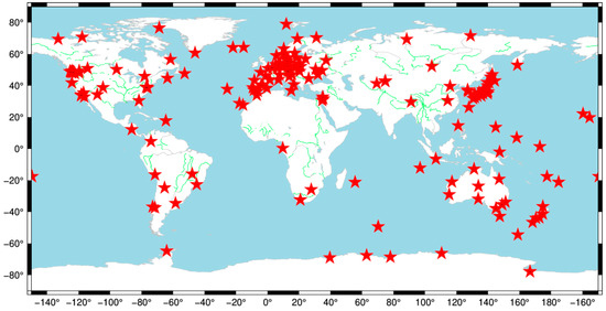 - Altamimi, Z.; Rebischung, P.; Métivier, L.; Collilieux, X. ITRF2014: A new release of the International Terrestrial Reference Frame modeling nonlinear station motions. J. Geophys. Res. Solid Earth 2016, 121, 6109–6131. [Google Scholar] [CrossRef]