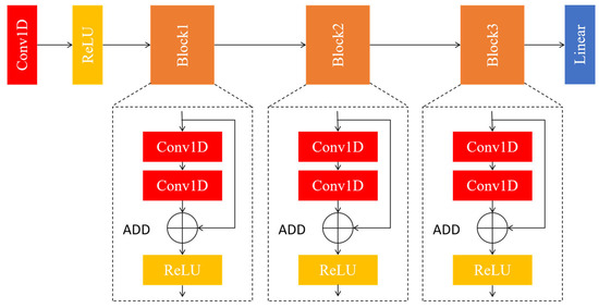 Building upon the two residual modules introduced by Fan [8], our model adds an additional residual module, which helps to extract deeper and more complex POI features, improving the model’s ability to capture intricate patterns in the data. The features are then passed through three residual modules for deep feature extraction. Each residual module contains two 1D convolutional layers, with the first layer having a kernel size of 3 × 3 and the second layer having a kernel size of 1 × 1. A residual connection is used to directly add the input features to the output features. After each residual module, the output is passed through a ReLU activation function before being forwarded to the next module, ultimately extracting higher-level POI features. The convolution operation aims to extract local spatial features from the POI data, and the residual connections help avoid gradient vanishing during training, allowing the model to learn deeper features.