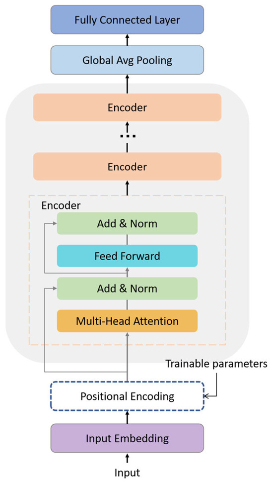 Next, the embedded and encoded OD data were passed into the Transformer encoder, which is the core feature of the extraction process [37]. The Transformer encoder consists of multiple stacked layers, each containing the following: