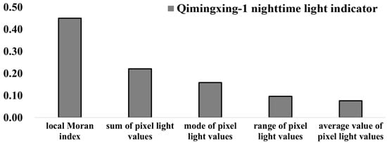 The importance of each indicator after normalization in the random forest model using only Qimingxing-1 nighttime light indicators.