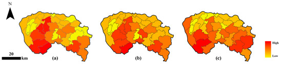 To validate spatial trends, we compared our model results with existing GDP spatial products. Due to the limited availability of publicly accessible high-resolution GDP spatial data for 2022, we employed the 1 km gridded GDP dataset of China (2020) from the National Earth System Science Data Center (http://www.geodata.cn, accessed on 30 May 2023) [43] and aggregated it to the town scale for validation. Despite the temporal discrepancy, Dongguan’s economic spatial pattern remained structurally stable between 2020 and 2022, with no large-scale industrial relocation or new district development.