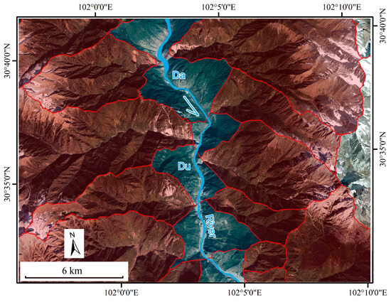 Suhail et al. [38], in their study of the Daduhe river basin catchments, only considered the catchments of tributaries that converge with the river’s mainstem. They did not address the areas through which the river mainstem flows, despite the fact that landslides frequently occur along the free surfaces formed by cutting and erosion on both sides of the river. Therefore, to comprehensively analyze the development characteristics of the river’s mainstem catchments, this study also includes these areas.