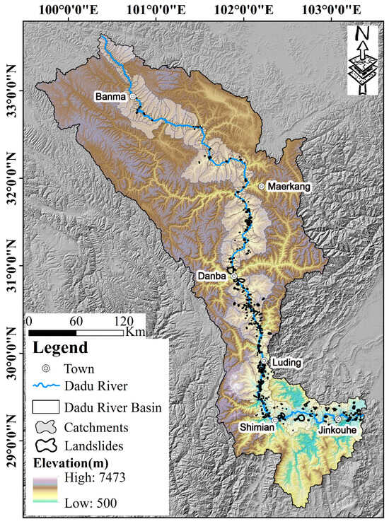 Large landslides’ distribution in the catchments of Daduhe river’s mainstem.
