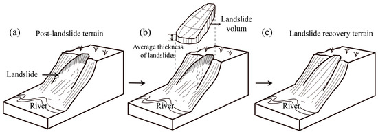 In the formula, V is the estimated landslide volume and A is the landslide area. In order to more accurately represent the role of landslides in controlling the evolution of topography and landscape, this study proposes a simple landslide volume recovery method.