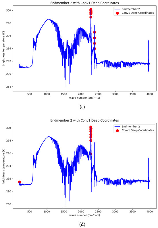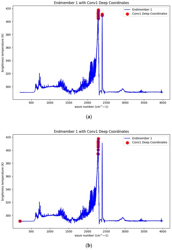 The features extracted by CNN are mainly concentrated at 2281–2284 cm−1 and 2388–2390 cm−1,as shown in Figure 10.The feature range extracted by MHSA-CNN has been narrowed down to 2282–2283 cm−1 and 2388–2389 cm−1 bands. The crest of 2282–2283 cm−1 mainly represents a cyano (-C≡N) or some specific isocyanate (-N=C=O) functional group correlation. The characteristic absorption peaks in this range are mainly due to the stretching vibration of the triple bond (C≡N or N=C=O); 2388–2389 cm−1 mainly represents CO2 [43].
