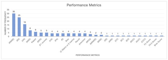 - Performance: Machine learning performance metrics serve as quantitative measures to assess model accuracy and effectiveness across classification, regression, or clustering tasks. Each article’s specific performance metrics and the best results are summarized in a table or presented as final values in the appendix.
