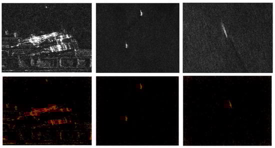 In certain scenarios, ship wake and ocean waves can generate strong reflection signals [74,75,76]. Ship wake appears in SAR images as diffuse patterns with gradually weakening intensity. We suggest that these typical wake characteristics assist the model in identifying ship targets, as the convergence point of the diffuse wake is the ship’s location. Ocean waves, on the other hand, generate background clutter, which may affect the quality of SAR expert features. However, as rigid bodies, ships produce reflection signals with higher intensity and more regular contours, helping to distinguish ships from background clutter. Overall, ship wake and ocean waves are factors that may impact the model’s detection performance. Therefore, our method will require specific analysis for better performance when applied to these particular scenarios.