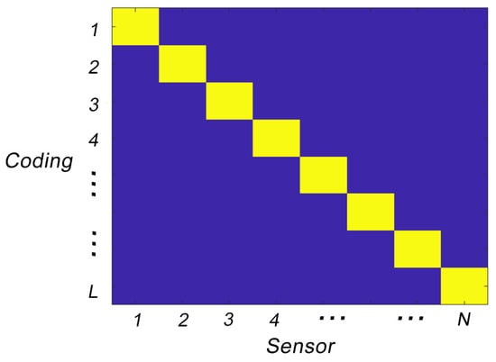 where is dictated by the space–time-coding modulation sequence implemented across the metasurface elements, and it is a matrix containing the harmonic coefficients of all orders. Assume that is denoted as