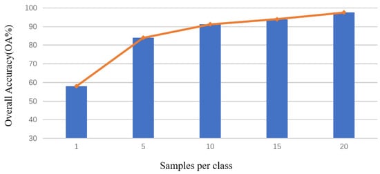 Additionally, experiments with varying sample sizes were set up to evaluate the robustness of our method under extreme data conditions. Specifically, experiments were performed on the Pavia University dataset using 1, 5, 10, and 15 samples per class. Notably, our approach demonstrates strong performance even under relatively limited settings (20 samples per class). However, as Figure 12 indicates, there is a significant performance drop with extremely scarce samples. This highlights the need for future exploration into specialized few-shot and unsupervised techniques to further enhance robustness in data-scarce scenarios.