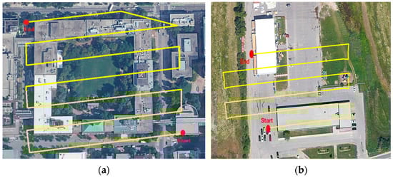 UAS flight path: (a) First dataset; (b) Second dataset.