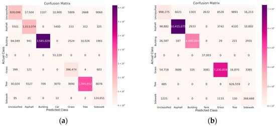 Confusion Matrix of PointNet++ on the Testing dataset: (a) Results for the first dataset; (b) Results for the second dataset.