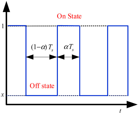 Based on the previous analysis, the AFSS reflector is made to perform periodic modulation as a function of time, as shown in Figure 14. The duty cycle of the rectangular pulse train is α, the pulse width is αTs, and the switching period is Ts. In this case, the periodic time-domain modulated signal is