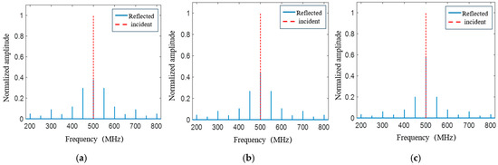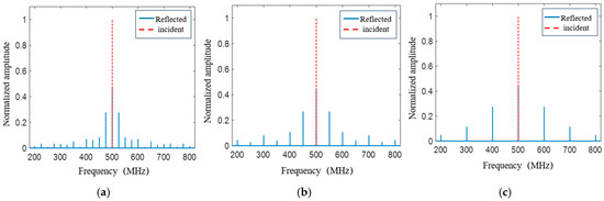 The spectral modulation results at different frequencies fs. (a) fs = 25 MHz; (b) fs = 50 MHz; (c) fs = 100 MHz.
