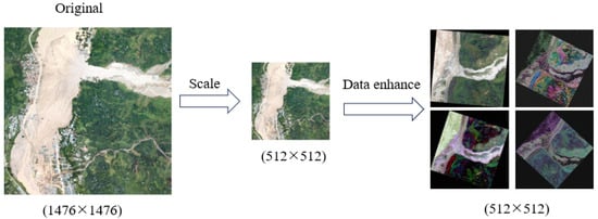 To visually demonstrate the advantages of balanced sampling, this paper compares it with the method of equal scaling combined with online enhancement. The scaling sampling strategy is as follows: First, the original image is scaled to the target resolution (512 × 512), and then a series of online enhancement operations is implemented on this basis. A detailed diagram of this process is shown in Figure 3.
