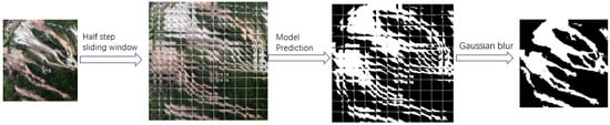 Post-processing [39] is very important for the segmentation task. First, the output of the model can be refined, the edges can be smoothed and the noise can be removed to make the segmentation results more accurate. Second, the execution efficiency of the entire visual task can be improved. This paper proposes a sliding window algorithm utilizing Gaussian blur [40], which can obtain good segmentation results for the whole image while ensuring the field of view of the model, to predict high-resolution pictures and reduce the computing resources of prediction.