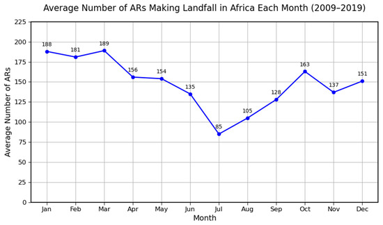 Average number of ARs making landfall in Africa each month (2009–2019).