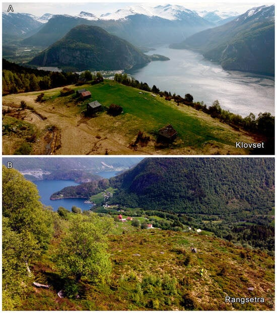 (A) Klovset is an example of a smooth and well-maintained historical shieling; (B) Rangsetra is a rougher and overgrown abandoned site. Photos by Kristoffer Dahle.