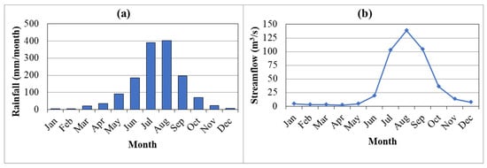 (a) Mean monthly rainfall of the Gumara watershed (1981–2019) and (b) mean monthly streamflow of the Gumara River at the Wanzaye gauging station (1981–2019).