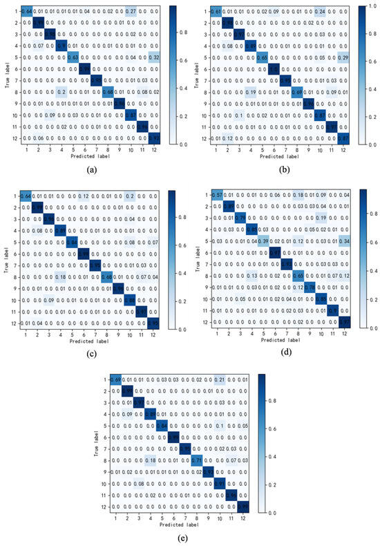 Here, Num_epoch represents the number of training epochs, Batch_size denotes the batch size, Learning_rate indicates the initial learning rate, Temperature refers to the temperature coefficient, and Hyperparameters refer to the hyperparameters used in the loss function of Equation (13). After training, test data from the target domain is passed through the common feature extractor, the dual-domain feature extractor, and the classification layer to obtain the final predicted labels.
