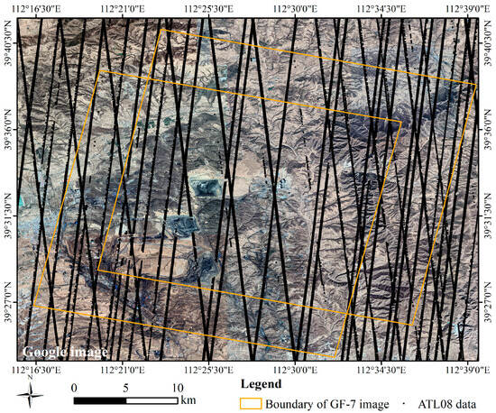 Case II: Geometric correction of GF-7 imagery with control points extracted from Wang’s method represents a relatively common approach for extracting control points from laser points. It is based on reference elevation data and ATL08 attribute parameters to extract elevation control points.
