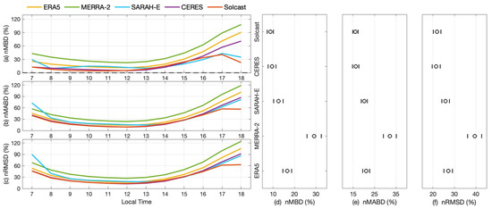 - Lu, L.; Ma, Q. Diurnal Cycle in Surface Incident Solar Radiation Characterized by CERES Satellite Retrieval. Remote Sens. 2023, 15, 3217. [Google Scholar] [CrossRef]