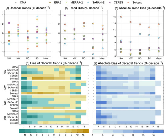 Wang, H.; Wang, Y. Evaluation of the Accuracy and Trend Consistency of Hourly Surface Solar Radiation Datasets of ERA5, MERRA-2, SARAH-E, CERES, and Solcast over China. Remote Sens. 2025, 17, 1317. https://doi.org/10.3390/rs17071317