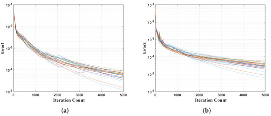 While this comparison neglects minor complexity accumulations, we further evaluate practical runtime performance by measuring the execution times and iteration counts across varying snapshot counts under the simulation setup of Figure 2.All experiments were conducted on an Intel® Core™ i5-7500 CPU (Lenovo, Beijing, China) @3.40 GHz with 8 GB RAM, with the results summarized in Figure 8.