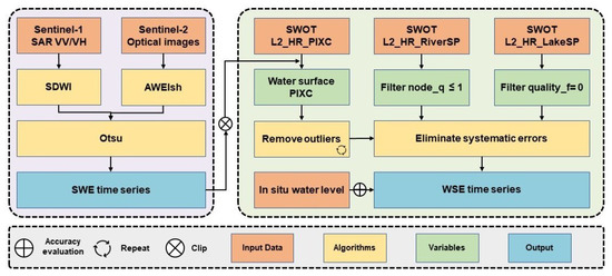 The authors thank the data providers for making the following data available: SWOT, Sentinel-1/2, GDW, and in situ water levels. Sentinel-1/2 data were accessed on the GEE platform (https://earthengine.google.com/). SWOT data were downloaded from the NASA Earthdata Search (https://search.earthdata.nasa.gov/). GDW data were downloaded from the Global Dam Watch (https://www.globaldamwatch.org/). In situ water level data were from the Information Center of the Ministry of Water Resources (http://xxzx.mwr.gov.cn/).