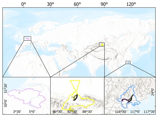 A total of 632 data points were primarily collected in three locations: Chaozhou, Urumqi, and Ghent (Figure 1). The collected data had a mean NSB value of 17.96 mag/arcsec2, ranging from 14.01 to 24.10 mag/arcsec2, indicating a moderate dynamic range.