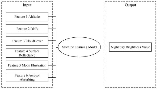 In terms of monitoring and quantification, existing methods can be categorized into field monitoring and remote sensing-based simulations. Field monitoring involves single-channel devices (e.g., Sky Quality Meter, SQM) and multi-channel devices (e.g., CCD cameras) to capture NSB data. While these methods offer high precision, they are time-consuming and labor-intensive because they only measure NSB at a single observation point at a time. To assess the entire area of a city or region, thousands of individual measurements are required, which is impractical for large-scale studies [31,32,33,34,35,36,37,38]. In contrast, remote sensing data-based modeling and simulation methods, which integrate satellite imagery and geospatial information technologies, enable more efficient large-scale evaluations of light pollution. For instance, utilizing DMSP/OLS and VIIRS nighttime light remote sensing data to construct nighttime brightness models has become a significant focus in recent years [39,40,41,42,43]. However, most existing models excel at quantifying the impact of artificial light sources but inadequately account for natural factors such as meteorological and atmospheric conditions. This limitation results in predictive inaccuracies in certain regions [44].
