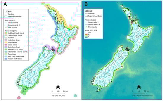 - Hume, T.; Gerbeaux, P.; Hart, D.; Kettles, H.; Neale, D. A Classification of New Zealand’s Coastal Hydrosystems. 2016. Available online: https://environment.govt.nz/publications/a-classification-of-new-zealands-coastal-hydrosystems/ (accessed on 24 February 2025).