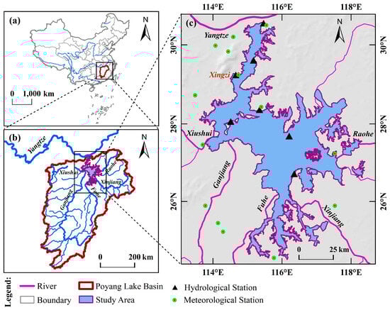 China (a), Poyang Lake basin (b), Poyang Lake wetland study area (c).