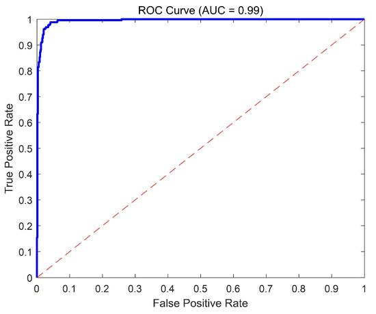On the test set, the final model achieved a classification accuracy of 97.4%, an F1-score of 0.95, and an AUC value of 0.99 as shown in the ROC curve (Figure 5), indicating strong classification performance. The confusion matrix (Table 2) showed that the model exhibited stable performance in both landslide and non-landslide classifications, with low false-positive and false-negative rates, further verifying its reliability.