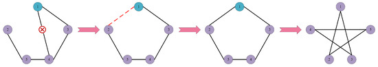 Figure 4 illustrates an example of calculating the GED between two graphs, where the value of the GED is 3. Transforming the graph from the left to the right requires three graph editing operations: (1) removing the edge between node 1 and node 4; (2) inserting an edge between node 1 and node 2; and (3) replacing the label for node 1.