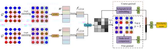 After dividing a pair of graphs into q subgraphs, the similarity between the subgraphs can be calculated using Equation (9). And then, the MLP is used to map the similarity scores between subgraphs to the coarse-grained similarity score, which is defined as follows: