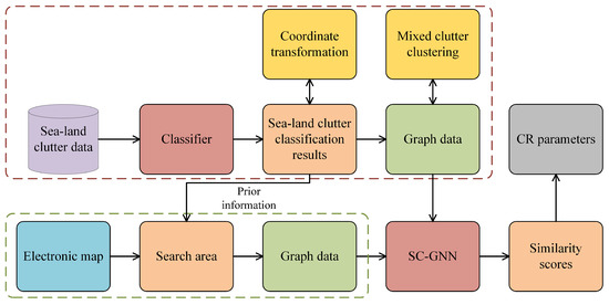The remainder of this article is organized as follows. In Section 2, the background of SLCC is reviewed, the process of CR is described, and the related notations for graph similarity computations are introduced. In Section 3, the process of calculating the CR parameters based on SC-GNN is described in detail, including converting the sea–land clutter data into the graph data, subdividing mixed clutter into sea clutter or land clutter, and the working principles of SC-GNN. In Section 4, the experimental datasets are introduced, and the experimental results are analyzed. Section 5 summarizes this work.