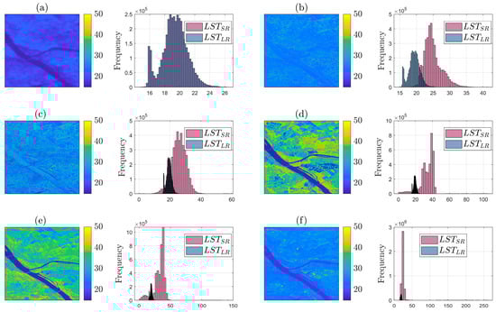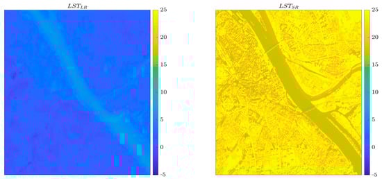 Recent studies have demonstrated the transformative potential of SR techniques in improving the accuracy of LST maps. These studies often use high-resolution space-borne LST data as a reference to refine coarse-resolution LST data. For example, Daniels et al. (2023) used Landsat-derived LST and an attention-enhanced convolutional neural network (CNN) to generate MODIS-equivalent LSTs with a spatial resolution of 30 m [26]. Chen et al. (2024) introduced the Cross-Scale Diffusion model, which enhances LST resolution in two steps: the PreNet network increases spatial resolution, and the Cross-Scale Reference Image Attention Mechanism (CSRIAM) reduces noise in the enhanced LST [27]. Similarly, Nguyen et al. (2022) developed the Multi-Residual U-Net (MRU-Net), a DL model that significantly improves spatial accuracy by generating MODIS LSTs with 250 m spatial resolution from 1 km data [28].