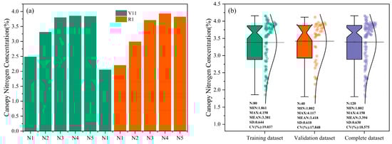 - Chen, X.; Li, F.; Chang, Q.; Miao, Y.; Yu, K. Improving Winter Wheat Plant Nitrogen Concentration Prediction by Combining Proximal Hyperspectral Sensing and Weather Information with Machine Learning. Comput. Electron. Agric. 2025, 232, 110072. [Google Scholar] [CrossRef]