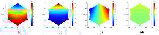 Simulation results after correction with the two-step correction method. (a) , (b) , (c) , (d) .