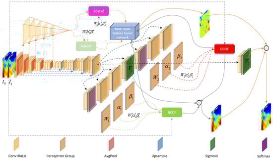 In this equation, denotes the concatenation operation, denotes the AdaCof operation, and denotes the multi-scale feature fusion network. Based on this, can be further modified as follows: