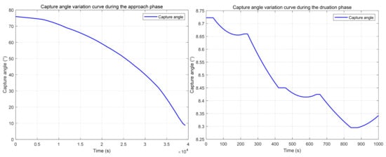 In the sustained phase, the mission satellite frequently applies impulse control to compensate for the trajectory deviations caused by the target satellite’s evasion maneuvers, ensuring that the target satellite remains within the capture region and prevents its escape. The mission satellite maintains the relative distance and capture angle through multiple impulse maneuvers within the capture region, ensuring that the target satellite cannot escape. The target satellite continues to maneuver in an attempt to break free from the suppression of the mission satellite and shorten the mission satellite’s dwell time within the capture region as much as possible.
