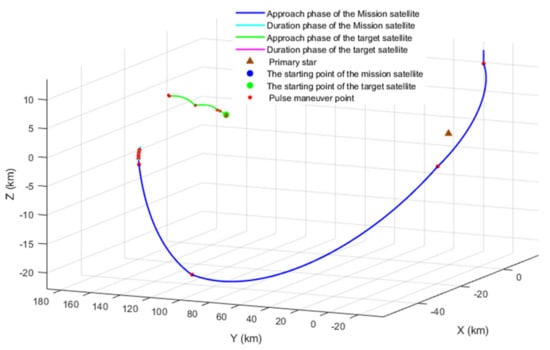 It should be noted that the mission satellite actively carries out tasks, while the target satellite passively counteracts. Constraints related to the mission, such as relative distance and duration, are independent of the target satellite. For example, the constraints for the target satellite include a pulse magnitude constraint and pulse interval constraint, which are completely independent of the mission satellite.