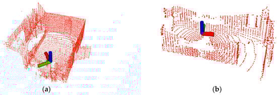 We selected the publicly available multi-LiDAR static calibration dataset [46] and our static dataset for experiments. The specifications of the sensors used are shown in Table 1, and the experimental scenes are shown in Figure 3.