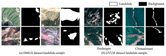 Sample landslide dataset. (a) Landslide samples from DMLD dataset; (b) landslide samples from GVLM dataset.