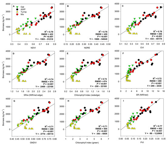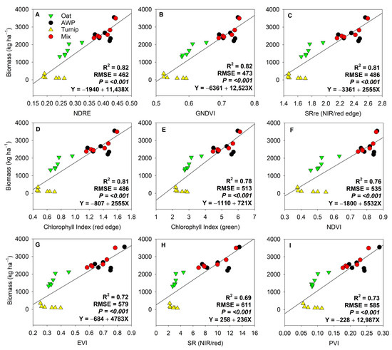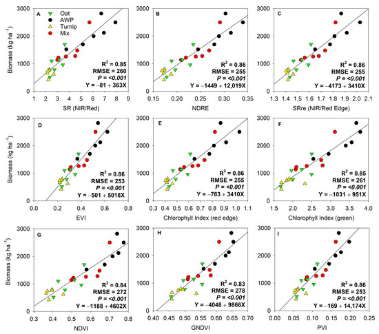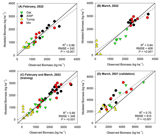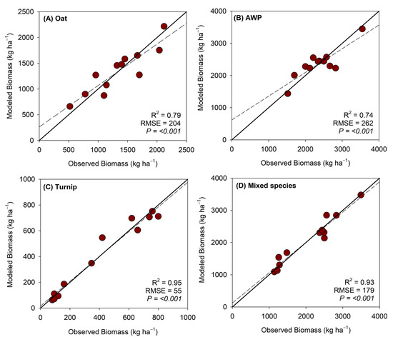 - Miller, J.O.; Shober, A.L.; Taraila, J. Assessing relationships of cover crop biomass and nitrogen content to multispectral imagery. Agron. J. 2024, 116, 1417–1427. [Google Scholar] [CrossRef]