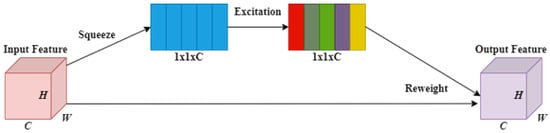 - Reweight: Weighting the normalized weights obtained in the previous steps onto the features of each channel completes the recalibration of the original features in the channel dimension. After reweighting, the size of the feature data is .