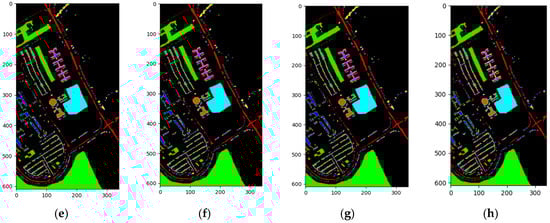Surface feature maps, ground-truth maps, and detailed class information for the IP, PU, and SA datasets are shown in Figure 15 and Table 13, respectively.