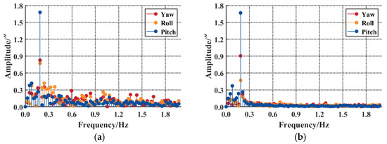 Frequency and amplitude of jitter errors: (a) extracted by the star sensor, (b) extracted by star sensors and gyroscope fusion.