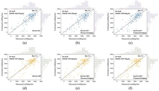 - Incorporating ground-truth lodging grades into the multimodal intermediate-level fusion strategy improved yield estimation accuracy from 0.62 to 0.65. When lodging grades obtained through SMOTE-ResNet classification were introduced, the yield estimation accuracy reached 0.63, comparable to the results obtained using ground-truth lodging grades. This suggests that including lodging information can significantly enhance yield estimation accuracy, providing valuable theoretical support for yield management in precision agriculture.
