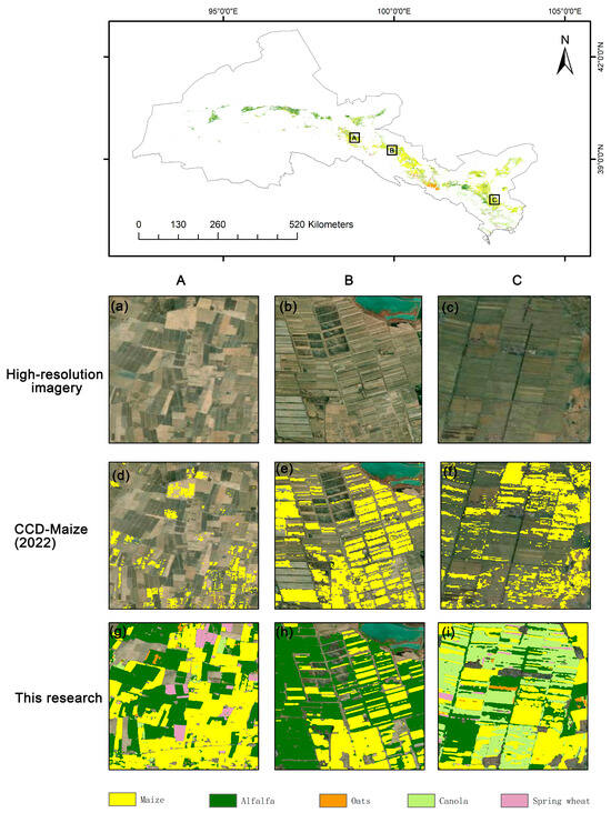 Specifically, since the final prediction locations in this study are all within the target domain (Hexi Corridor), we extracted 30% of the ground truth data as an independent test set. The accuracy evaluation of each crop classification mapping model in this paper is conducted based on this independent test set.